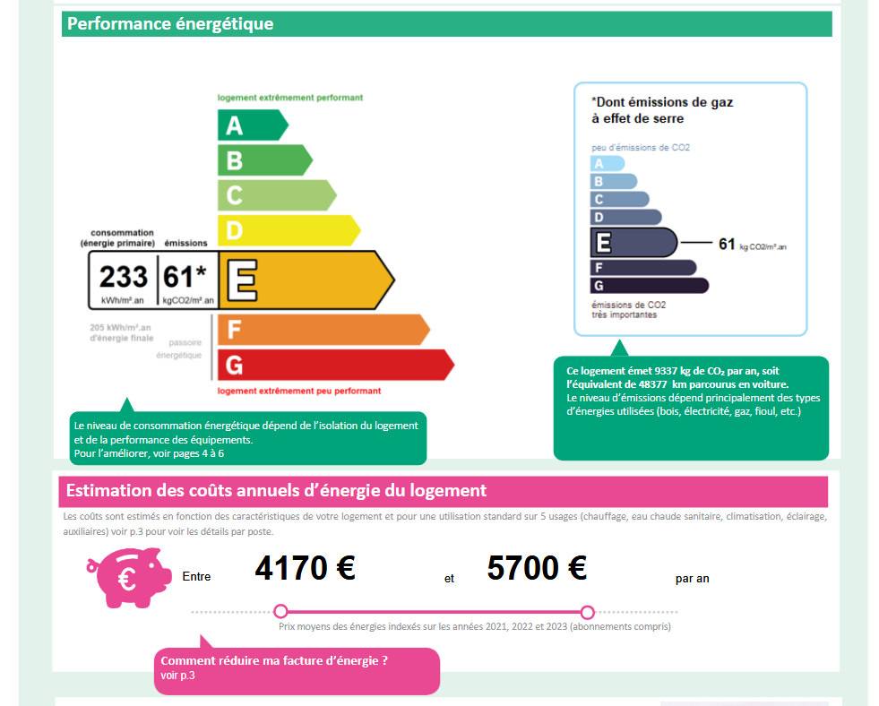 Consommations énergétiques - E - 233 kWh/m²/an.