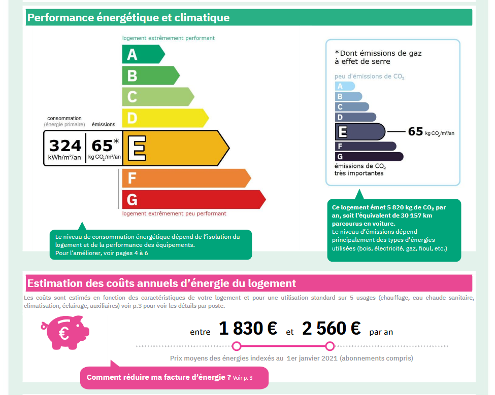Consommations énergétiques - E - 324 kWh/m²/an.