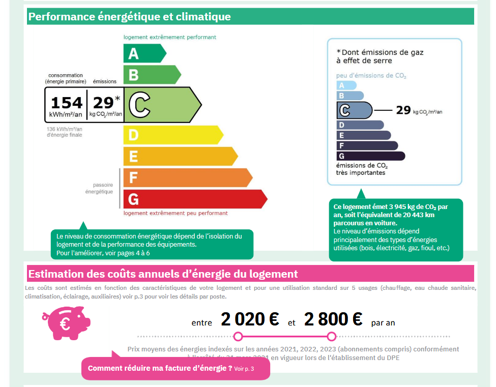 Consommations énergétiques - C - 154 kWh/m²/an.